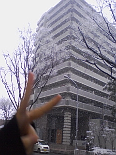 福岡で雪がふりましたー